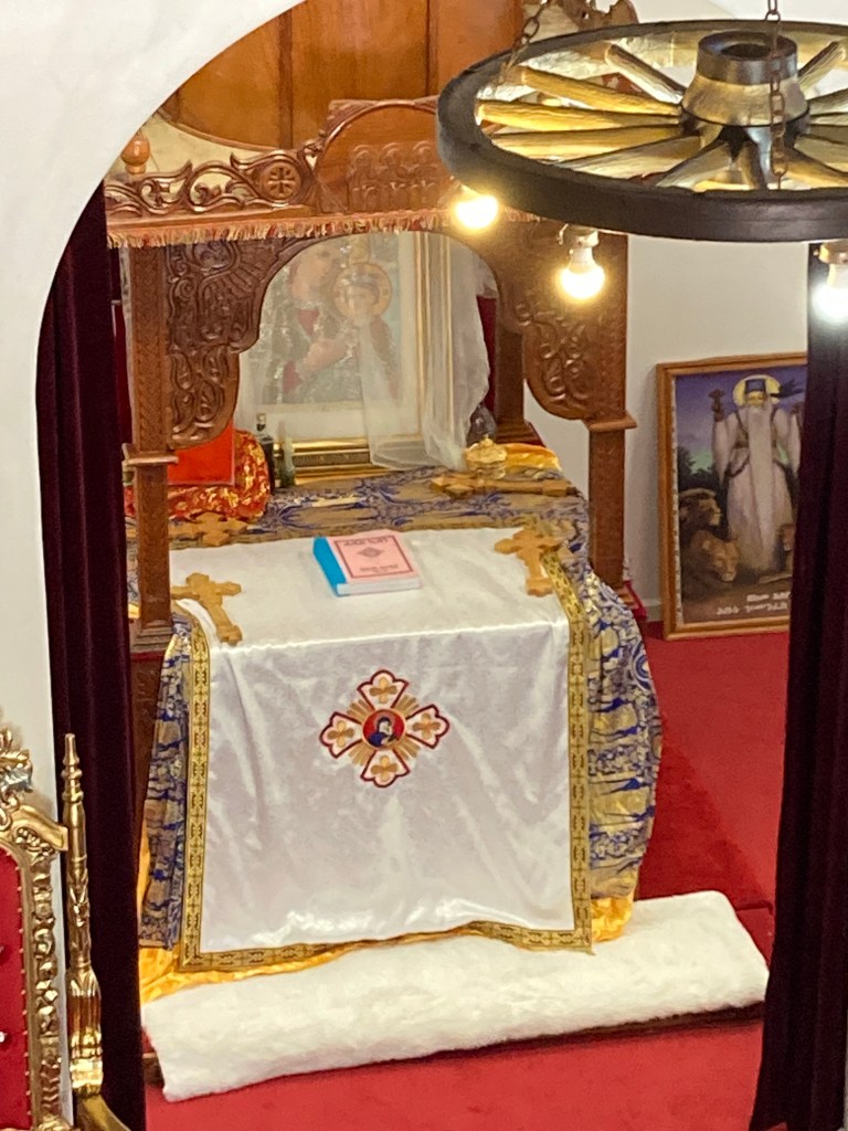 After the meal and socializing, we went down to the church for the ceremony of the consecration of the Tabot. This requires some explanation. A “Tabot” in an Ethiopian church is a duplicate of the Ark of the Covenant that Moses had the people carry through the wilderness. The word comes from an even older Egyptian (Khemetic) word referring to the sacred arks, or boats, that were used in religious ceremonies, and it is the same word that is used to refer to Noah’s Ark. Tabots are especially sacred in Ethiopia because of the history of the Ark of the Covenant leaving Israel in the time of Solomon to reside in Axsum, Ethiopia, where it now remains today. A Tabot, in this case, isn’t actually a reproduction of the entire Ark, just the two tablets of the law that were given to Moses. Since time immemorial, the presence of a Tabot has been a necessary component for any Ethiopian church to be able to perform baptisms, communion, marriages, and other sacred ceremonies.