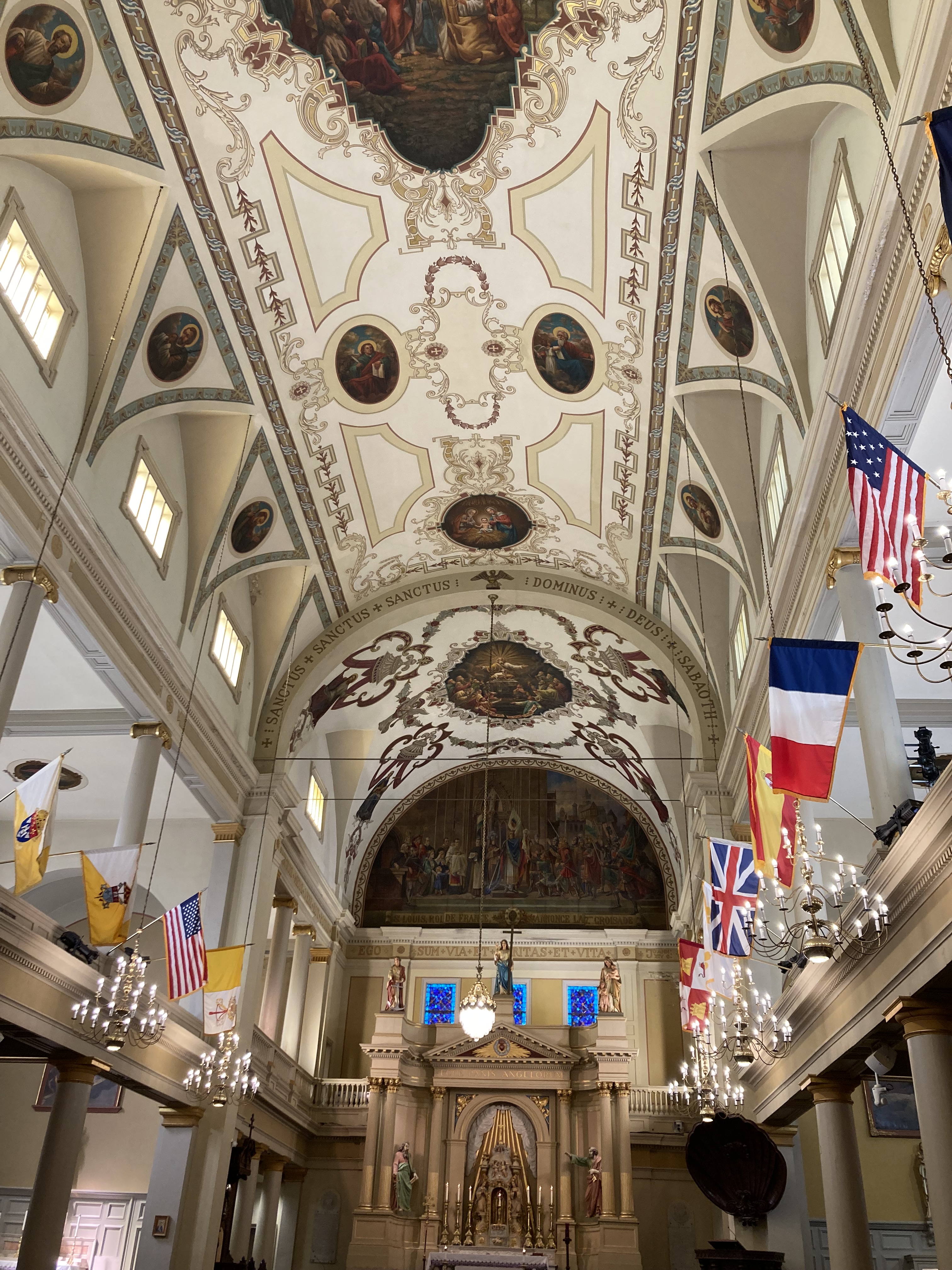 The day after Fat Tuesday was Ash Wednesday, and Chelly–being a Catholic herself–brought me to the big cathedral for a noon mass. The St. Louis Cathedral (designated a “minor basilica” by one of the Popes) was absolutely packed with people, to the point where it was standing room only. Signs and announcements let us know that this was the oldest operating Christian church in the United States of America. The Church was massive and gothic, with ornate architecture and vaulted ceilings covered in elaborate, romantic paintings.