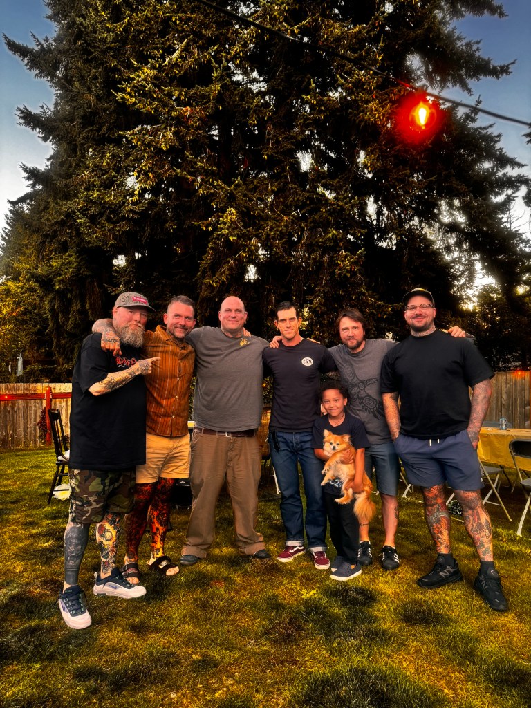 This was a simple backyard barbecue with some old friends of mine from my teenage days and early 20s who’ve stayed in touch. We told stories and reminisced, lamented the state of America today, and ended up around a campfire talking about God. Big Joe loved the book of Philokalia I brought him from Powell’s. This group of people shares a certain sense of maturity and blossoming wisdom as a bunch of punk rockers and skinheads who went hard at life and then grew up, most becoming Orthodox Christians. We know the realities of evil, that pain and suffering are real and there is no reason for humans to inflict these on one another. We also know the realities of good, of love and kindness without conditions, of forgiveness. And we work to be people who are bringing more good into the world than evil. We’re through playing games with morals and ethics like we did when we were kids. We’re all praying that the good we do might outshine the bad we did when we were younger, and we’re trying to be good influences in one another’s lives.
