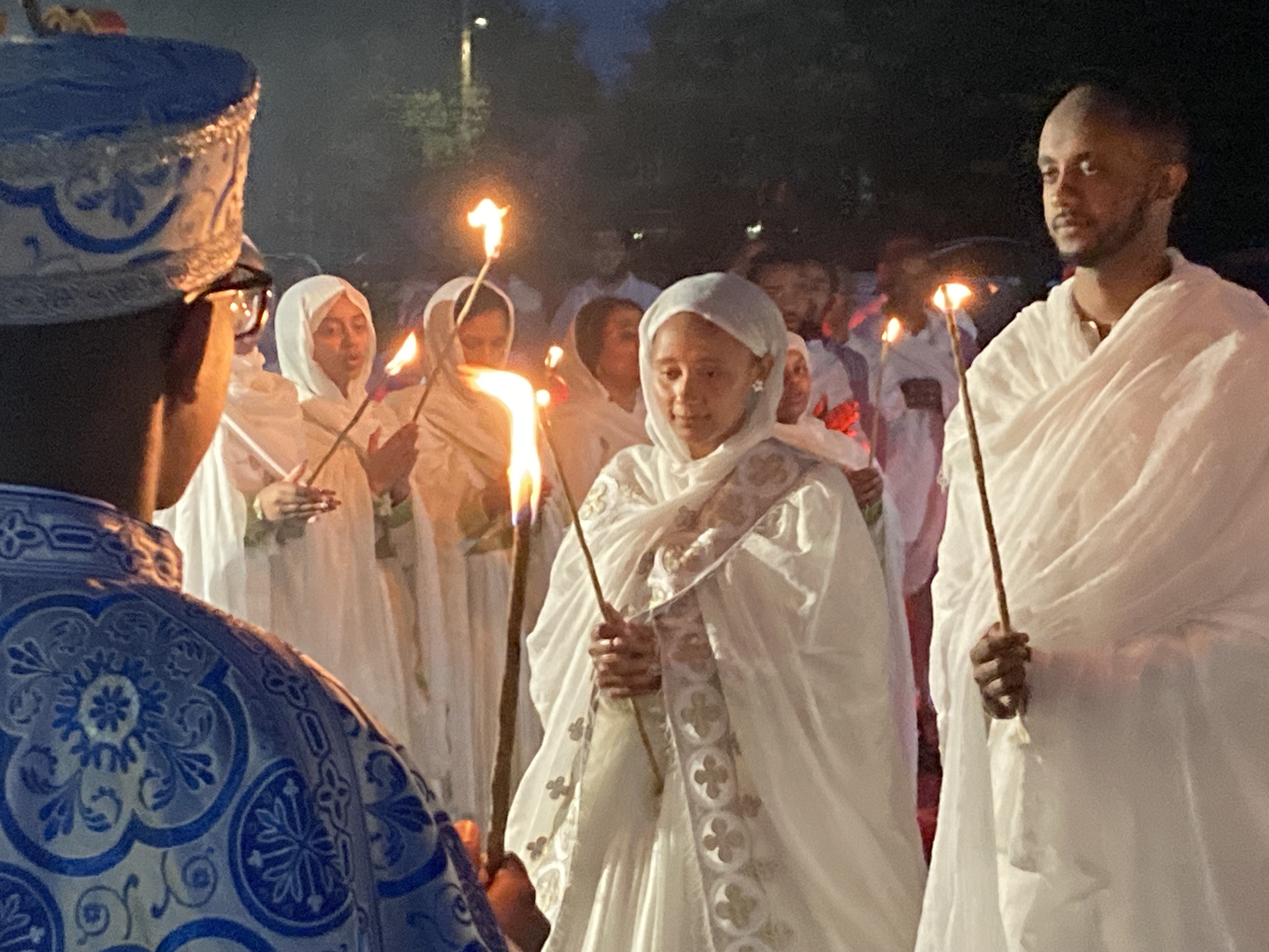 It started with an early AM Uber, 4:30 AM to be precise. This got us to the Church before the bride and groom arrived, so we didn’t miss a beat. These Ethiopian church weddings start before sunrise, beginning with prayers of preparation as the Priests and Deacons open the doors, turn on the lights, and begin to pray over the implements to be used in the service. Believers file in slowly, remove their shoes, and say their own prayers to make themselves ready.