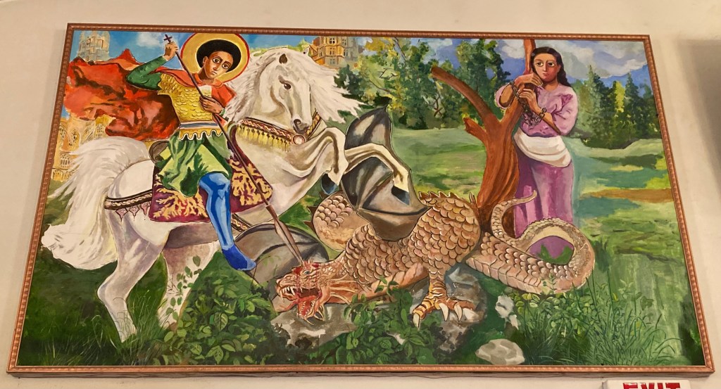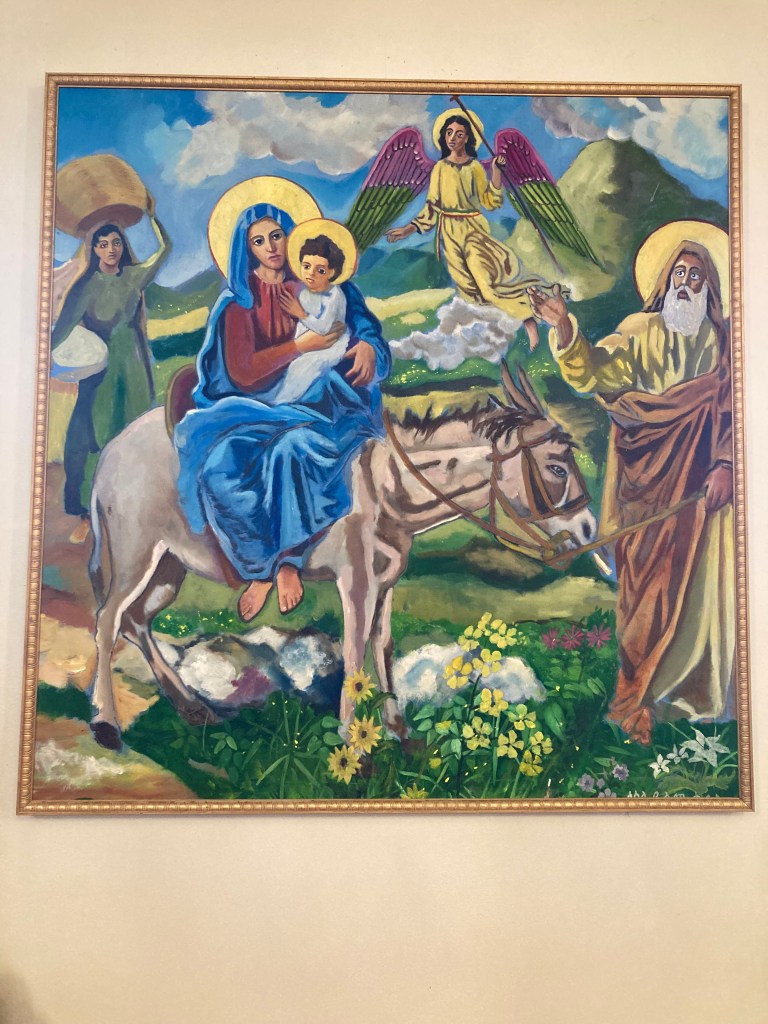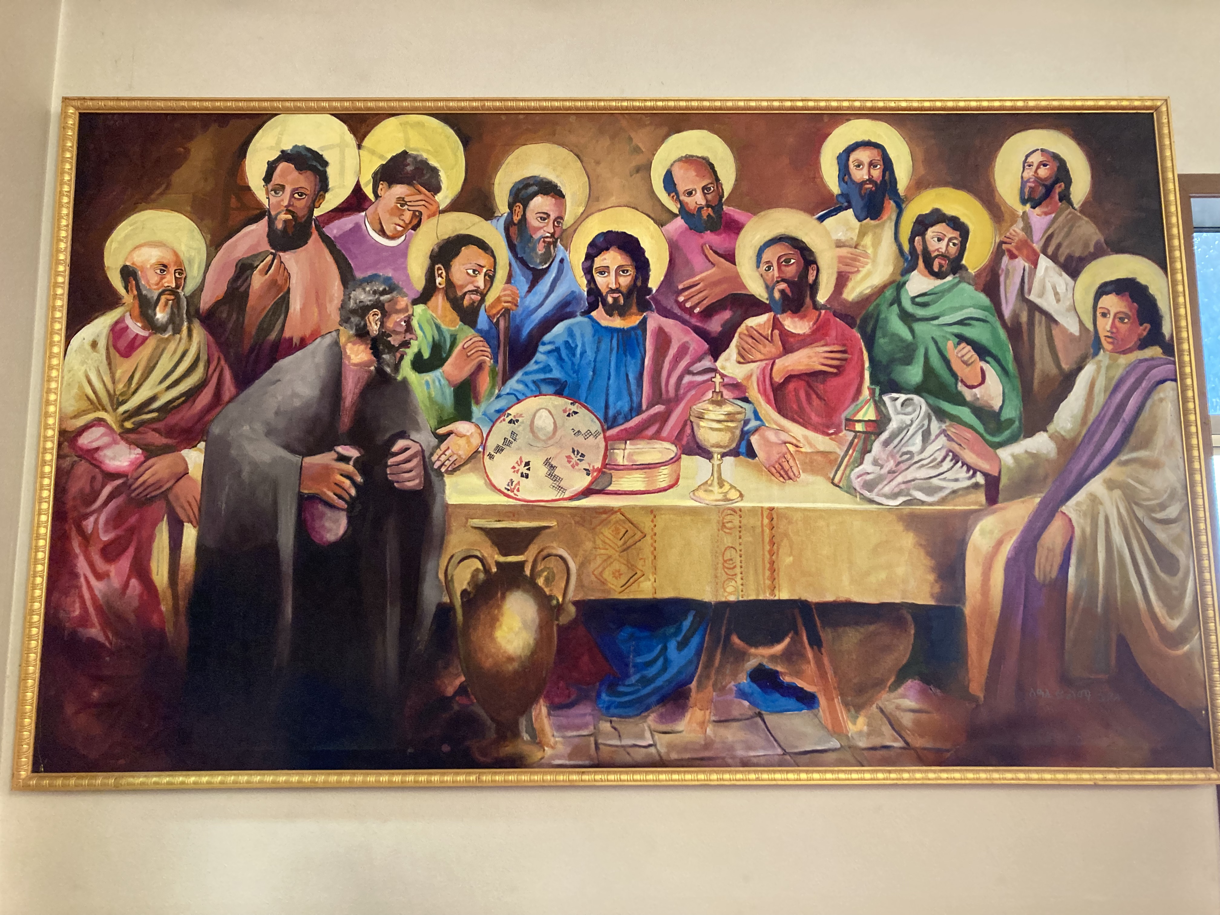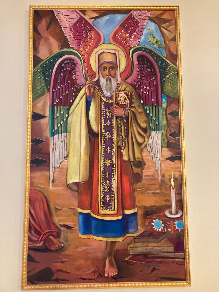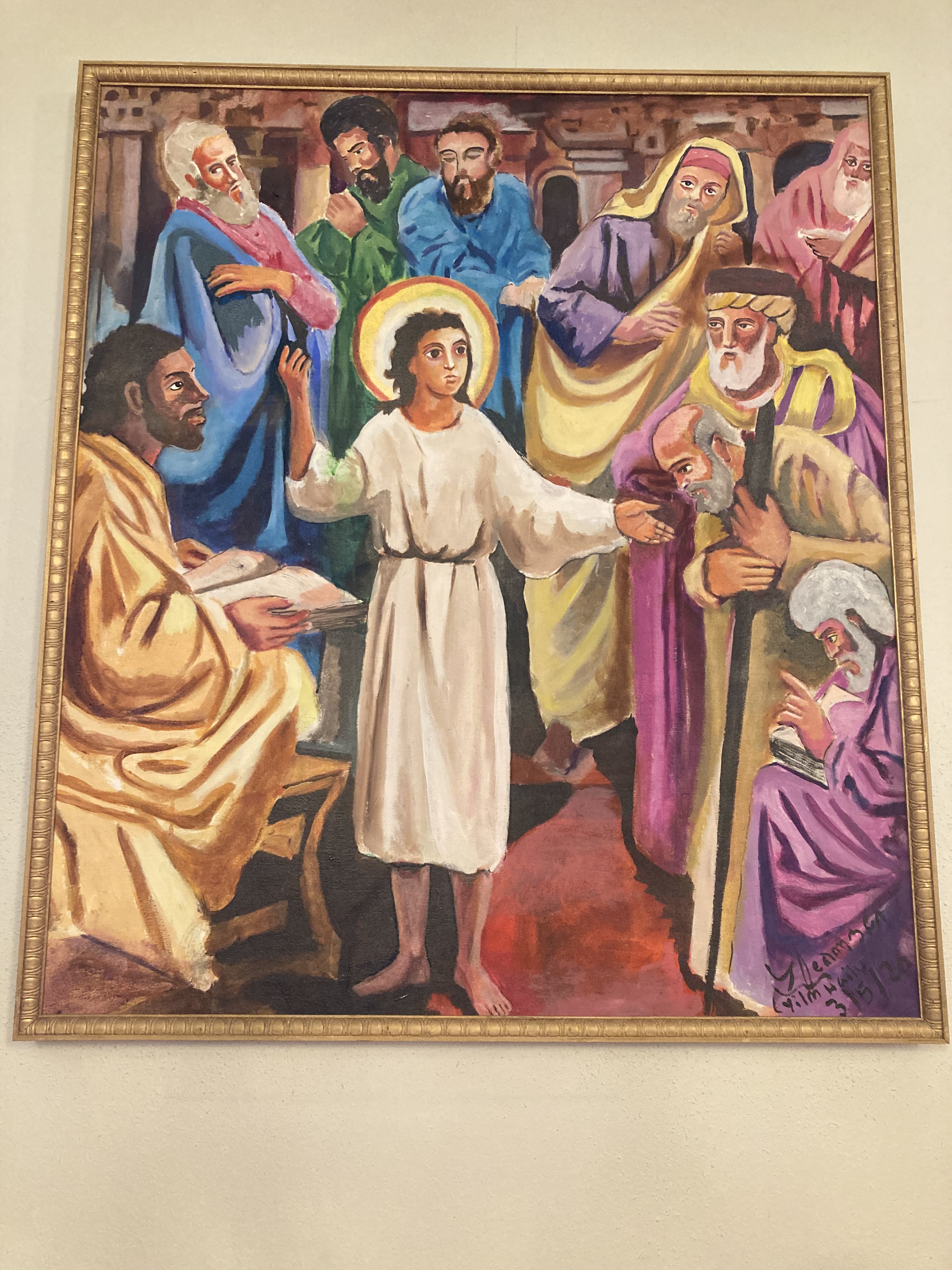 For an absurdly long time, the bride and groom stood at the front of the church before the iconostasis (the wall of icons) as groups of 2 or 4 or 10 came up to pose for photos with them. This part took forever! But, it was so joyful, as everyone wanted their turn–at least once–to pose and smile with the happy couple. I got in there for a couple pictures, and also took this time to take photos of the gorgeously painted icons ringing the room. These were all done by a painter called Yilma Hailu, who paints in a style quite distinct from what I’ve seen before in Ethiopian churches. These were much more naturalistic and almost impressionist in their use of textures, light, and shadow, differing greatly from the flat, traditional style I’m used to.