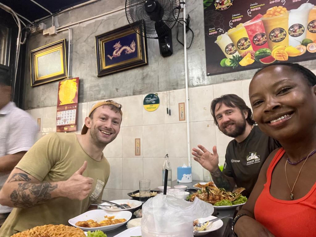 I drank a coffee topped with ganja-infused oil at The Bangkok Stoner on Monday that had me high as a kite all night and into the next day. We also went out partying on Khaosan Road until dawn (again) that night. But somehow, Chelly and I still got up in time on Tuesday morning to catch a train and meet Seth for late breakfast around 11am. We enjoyed a fantastic and fabulous seafood meal, the very stuff of fantasies and fables…