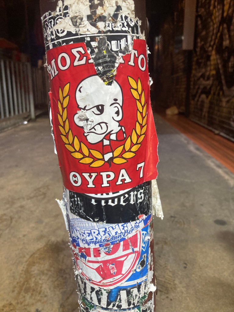 There ARE, however, pictures of the “no farting” sticker we saw in the back of a taxi cab, the logo on the “Angry Daddy” toy vending machine in Mandy’s neighborhood that kind of looks like me, and the random Greek skinhead sticker that might have something to do with a football team, but could just as easily be from a band, and kind of looks like me as a teenager. I love Bangkok.