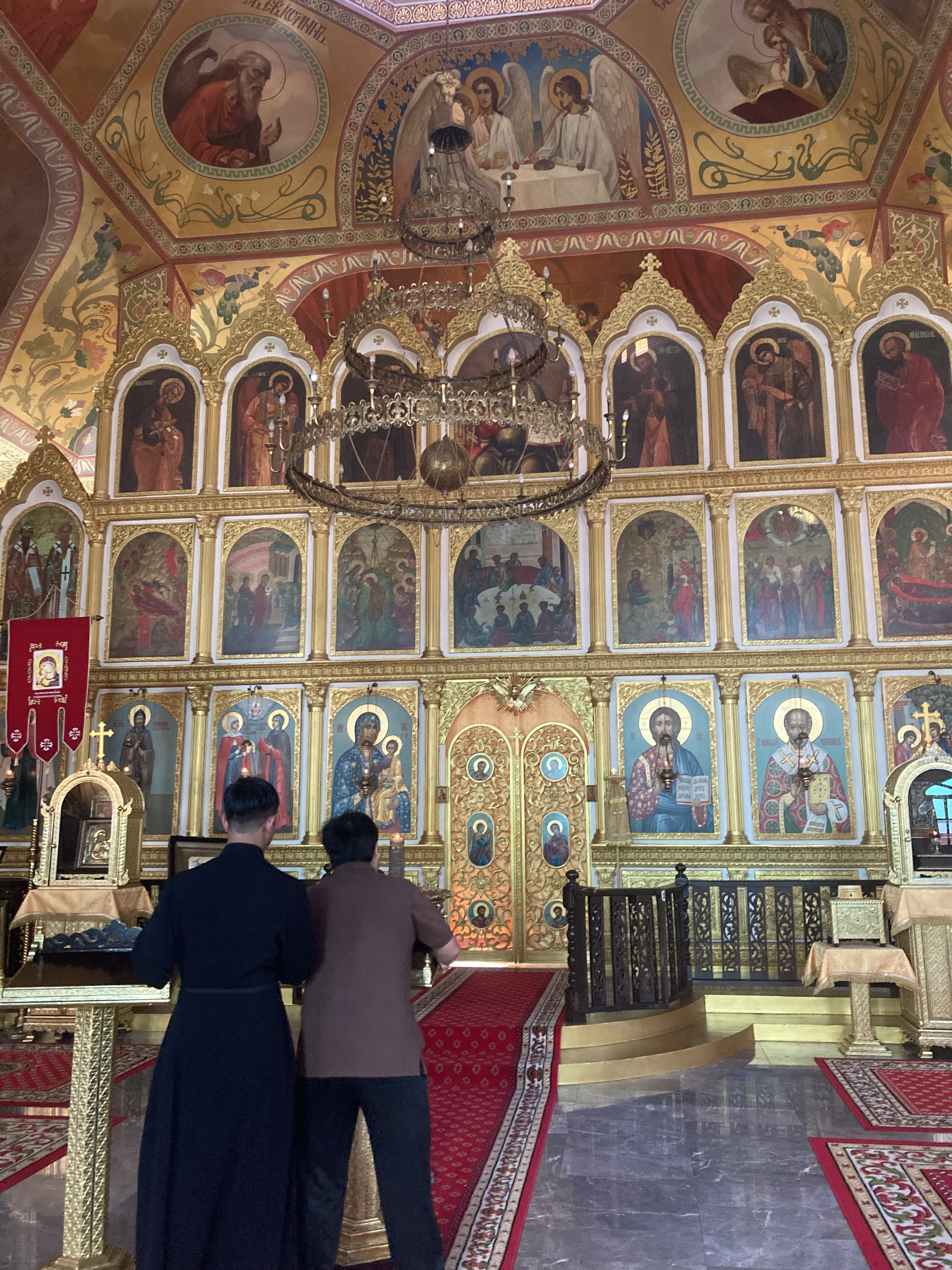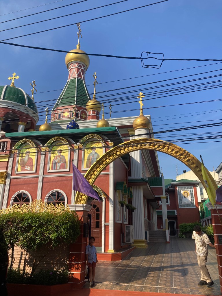 Early the next morning, I picked up my sons in a taxi cab and we headed to the Church, making sure to arrive before 8am. It was like an island of Russia in a sea of Bangkok. A beautifully-appointed Church resplendent with golden details and hand-painted icons adorning nearly every surface, it was also meticulously clean. Russian churches don’t have pews, so we stood for a couple of hours as the room slowly filled with worshippers and the Priests and Deacons–some Russians, some Thais, and maybe other nationalities–performed their preparatory prayers and Eucharistic services in a mixture of English, Thai, Russian, and Church Slavonic (the equivalent to Latin or Greek used in many Eastern Orthodox churches). Amongst the worshippers were people of many different nationalities, impossible to identify other than the obvious Thais and Russians and a handful of Ethiopians.