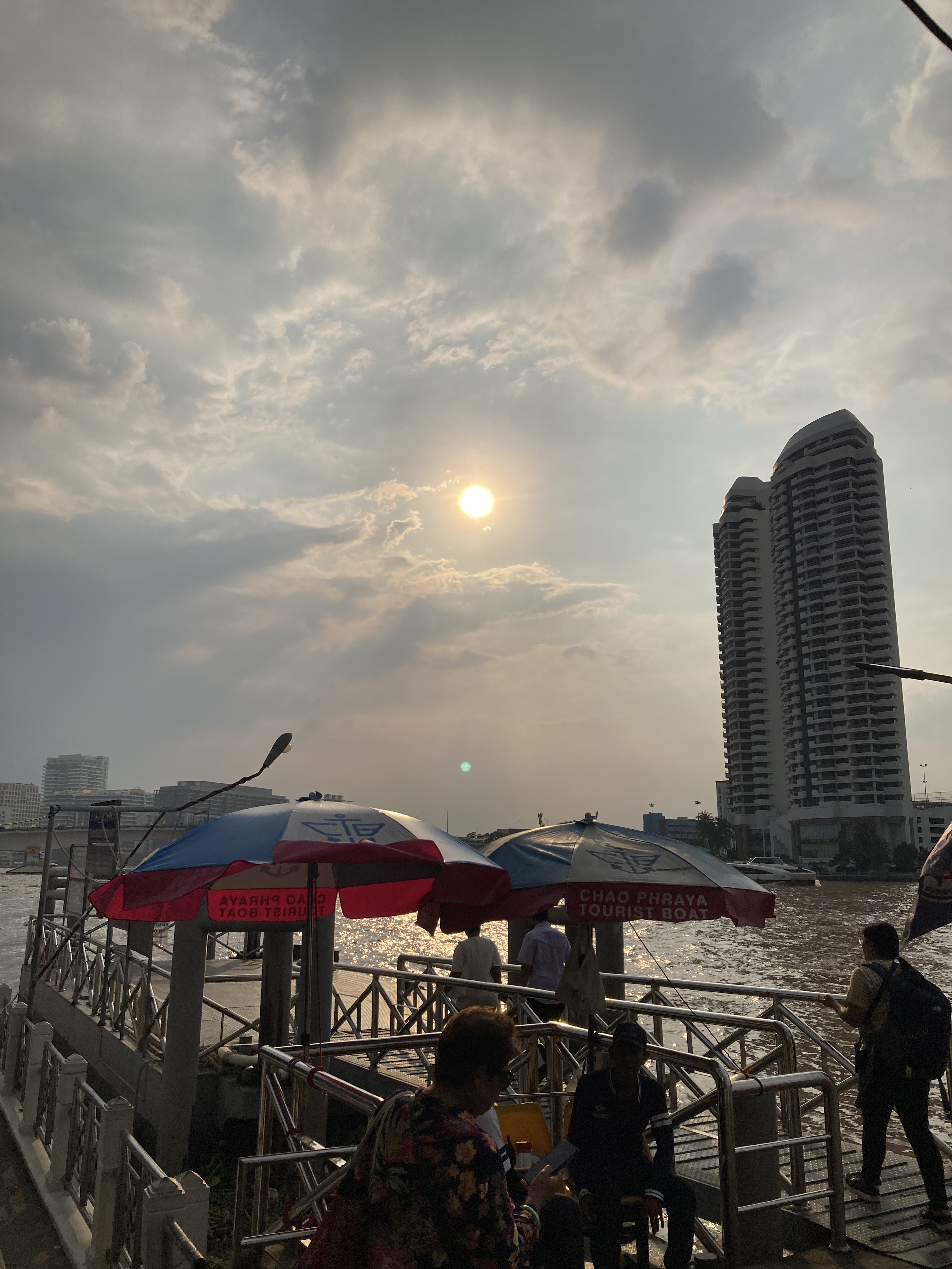 After the workout, a smoothie, and some office work in a local coffee shop, I did a bit of bulk clothing shopping near the river (40 pieces for about $200), and took a ride on the ferry. Bangkok has a number of riverboats that run up and down the Chao Praya River. Some are for sightseeing and others for local transit. While it might not be quite as fast as getting around by other means, such as car, motorbike, bus, train, or tuk-tuk, it was definitely more pleasant, and there were never any traffic jams on the river.