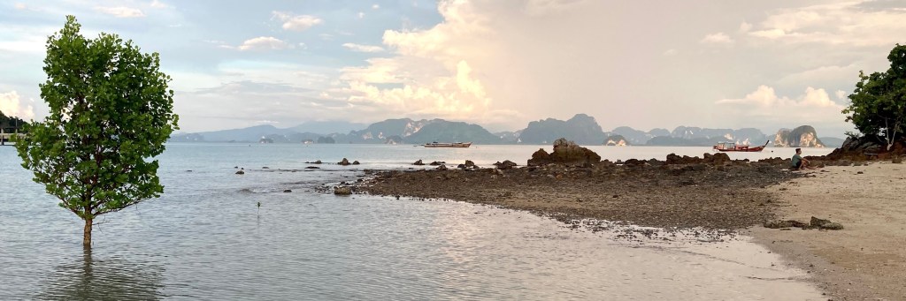 Here are some pictures I took of the natural beauty of Koh Yao Noi. Of course, it’s mostly stunning beaches, with views of the Andaman Islands across the sea. The views from every side of this island were priceless. Amongst the photos, there are also some shots of the little patterns the crabs make on the beach through their feeding habits. Nathan and I explored an island that is only accessible by sandbar when the tide is low, but isolated when the tide is high. There we saw a tree growing up through the water. I got some pretty cool shots of the islands and boats as well. When we rode our scooters around the island and travelled through the rice patties, I got some shots of the water buffalo who live out there. Another gorgeous natural vision.