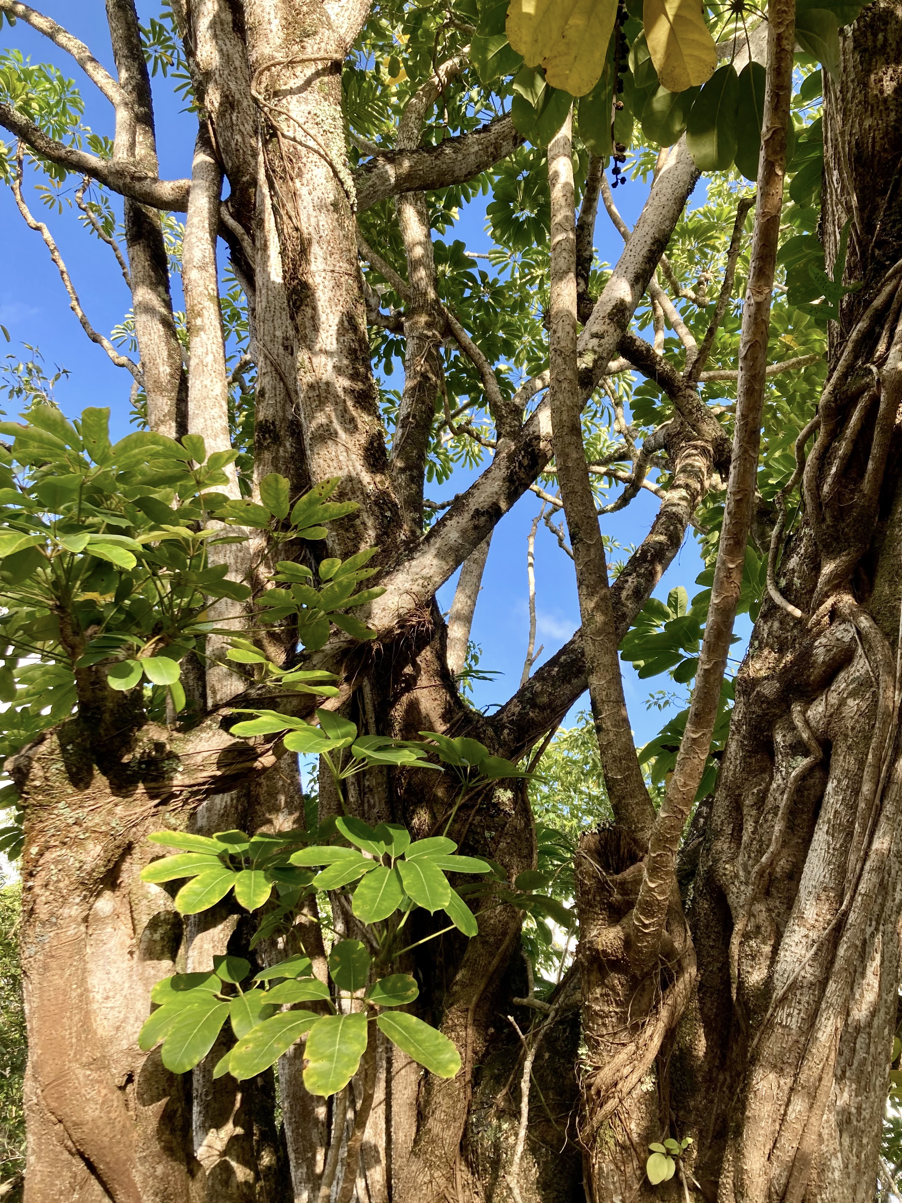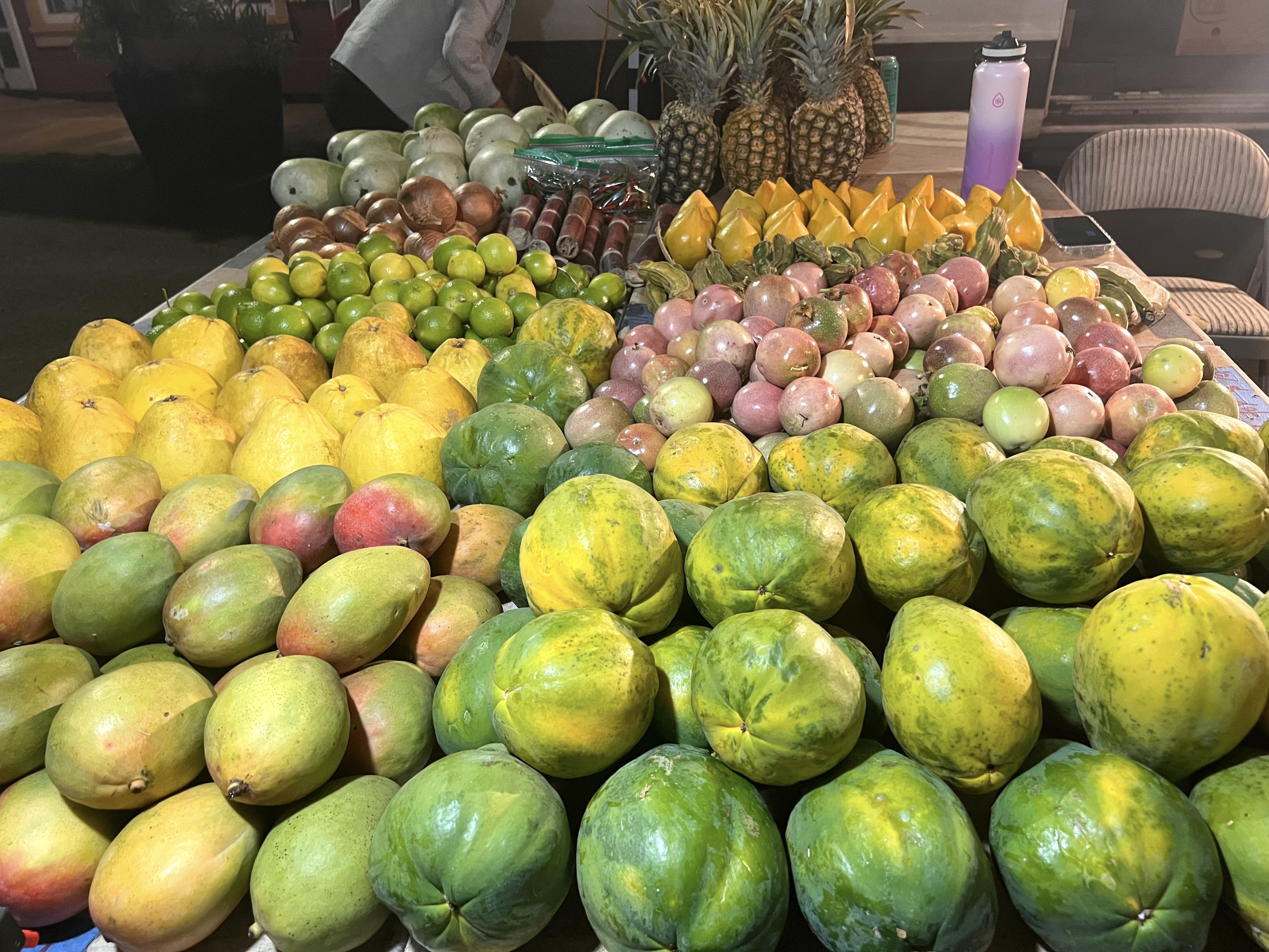 After that, we went out in search of dinner. This time we headed West towards Hanapepe. I was looking for a good sushi place and I found one called Japanese Grandma. From the street, it didn’t look like it was open. The dining room was empty and Chelly doubted me, but I had Google Maps that told me this place was open, busy, and highly rated. Then we found the sign for the garden path and seating in the back. We walked back there and found the outdoor seating (both covered and uncovered) was packed with people. There was live music there too. Luckily, we got a table and settled in next to an incredible tropical tree (Banyan, maybe?). The sushi here was awesome, a welcome change for me after a series of bad sushi experiences recently. I especially liked the bluefin tuna sampler, with lean, semi-fatty, and totally fatty versions. I liked the lean the best and ordered more. When we left the restaurant, we discovered the Hanapepe Art Walk, which just so happened to be happening that night (and we didn’t even know). That was a cool event, with vendors in the streets and a little farmer’s market of it’s own. I picked up a bag of varied tropical fruits, some old favorites and some new experiences. We also got some gluten-free lumpia and fried mochi balls. Chelly is a Chef, don’t ya know, so every one of these meals and shopping trips would be considered research. Eating isn’t everything in life, but it’s a big part.