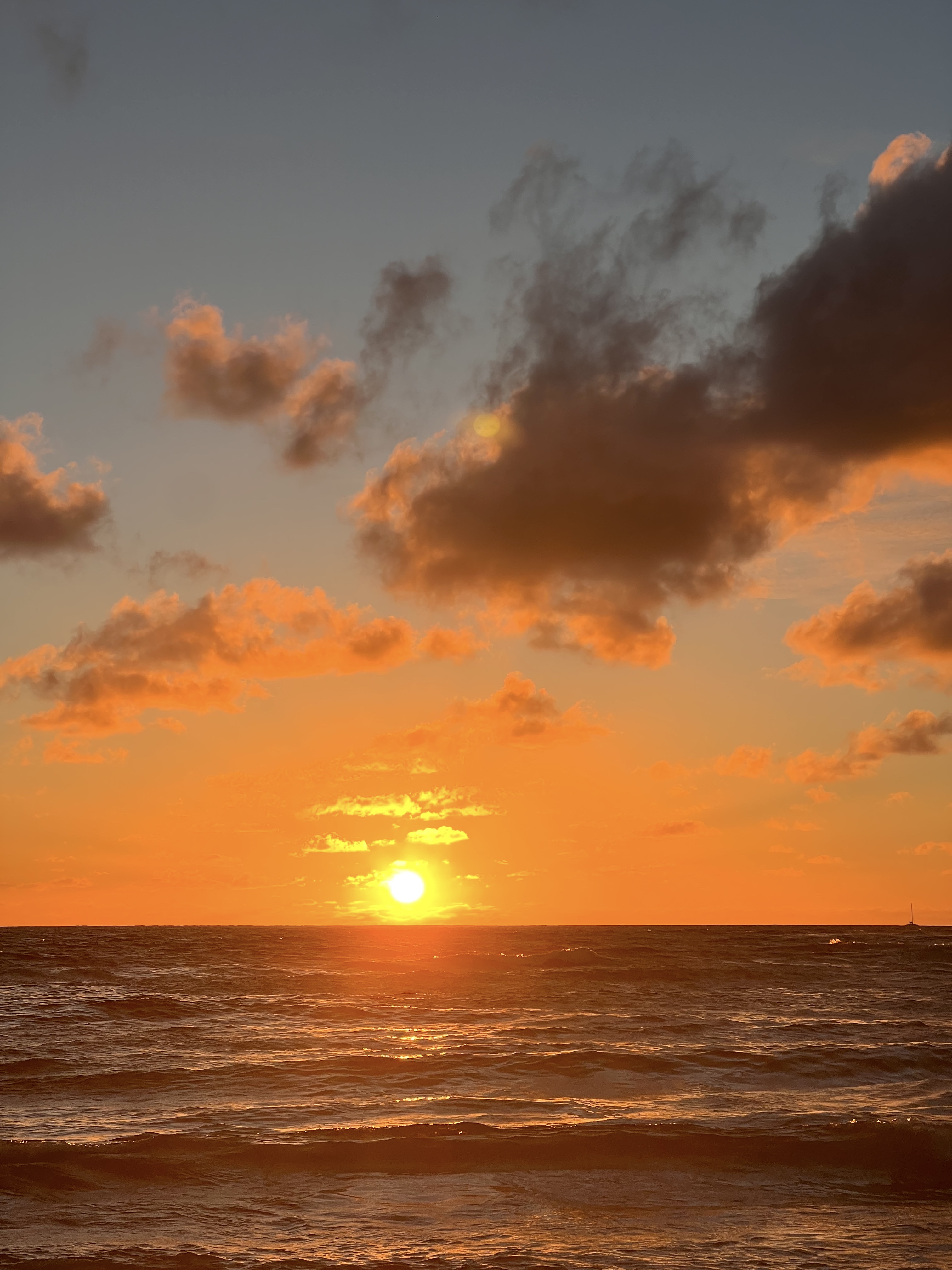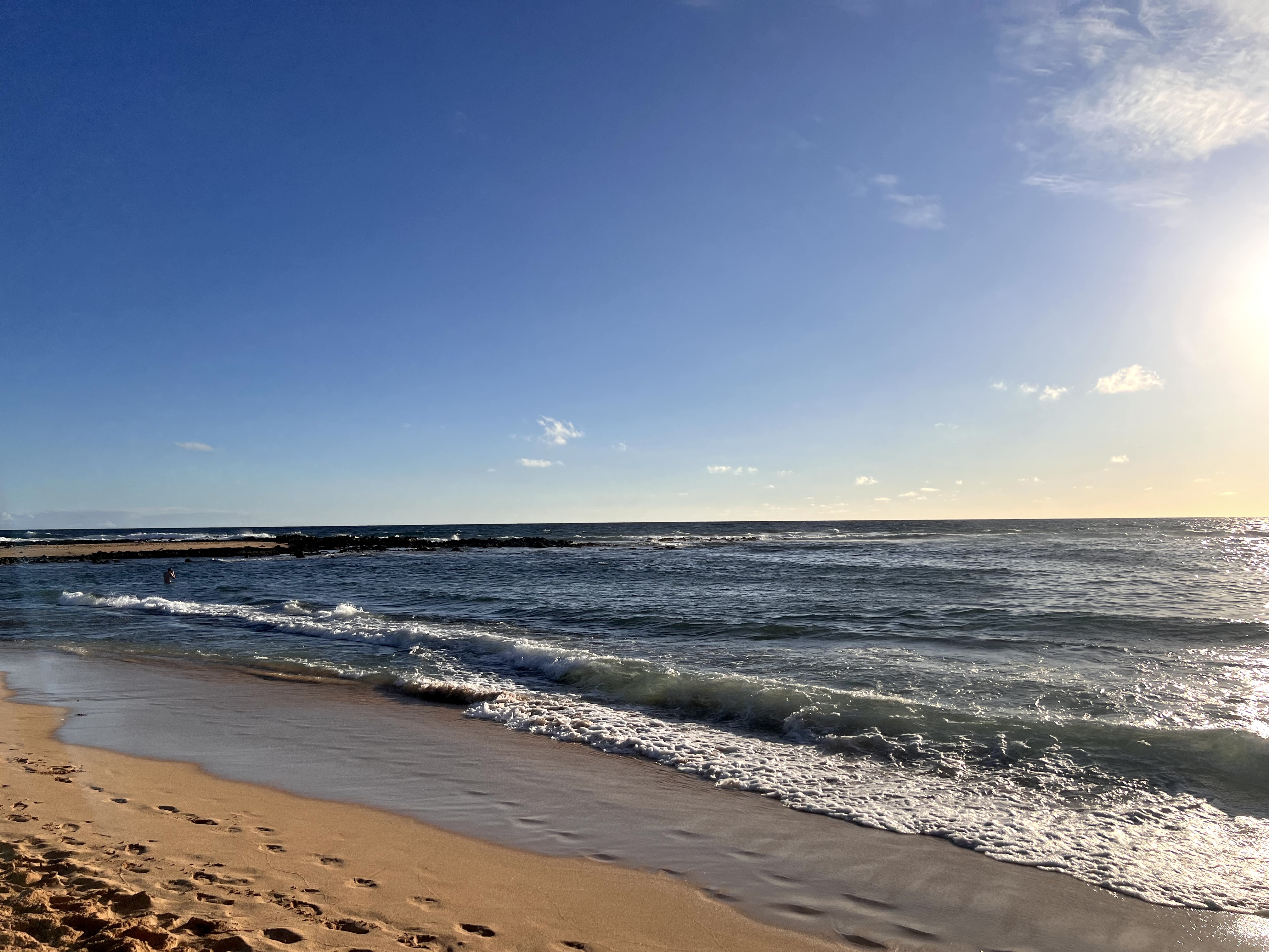 I made dinner reservations at a place called “Duke’s”, which was a kind of fine-dining chain that I was familiar with from visiting the big island in 2022. Then we went home for a nap. We woke up from our nap and got dressed just in time to make it to our dinner plans. It was a nice occasion, our anniversary night, and the service was great, but the food was so-so and the salad bar was atrocious. They’re lucky I don’t do Yelp. We had a lovely dinner anyway. I had a great view with the stunningly gorgeous woman sitting across the table from me, and we had a nice time just talking and looking around and halfway enjoying, halfway complaining about the food. I saw some awesome vintage Aloha shirts framed and hung up on the wall that had belonged to the original “Duke”, Duke Kahanamoku, the man who popularized surfing to the world, and the restaurant’s namesake. Finding a long-sleeve shirt like that became my big objective for the trip, but it was sadly unfulfilled. After dinner, we just went to bed early. Day done.