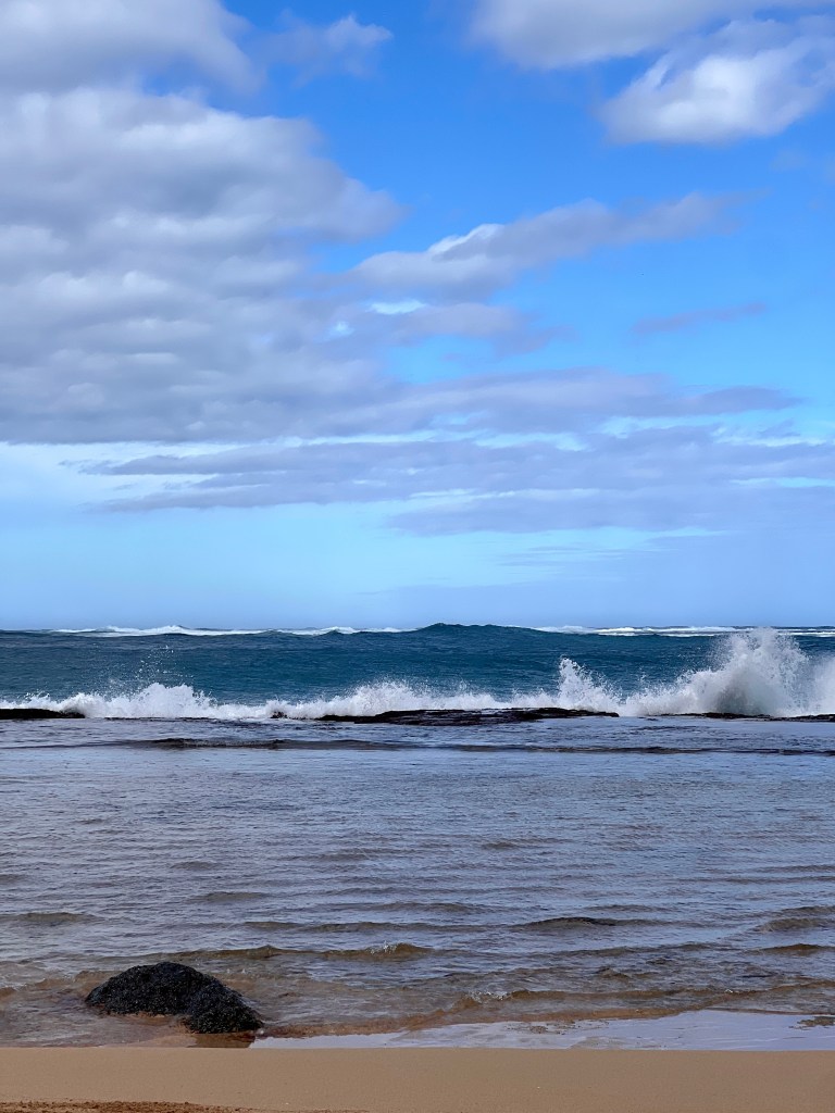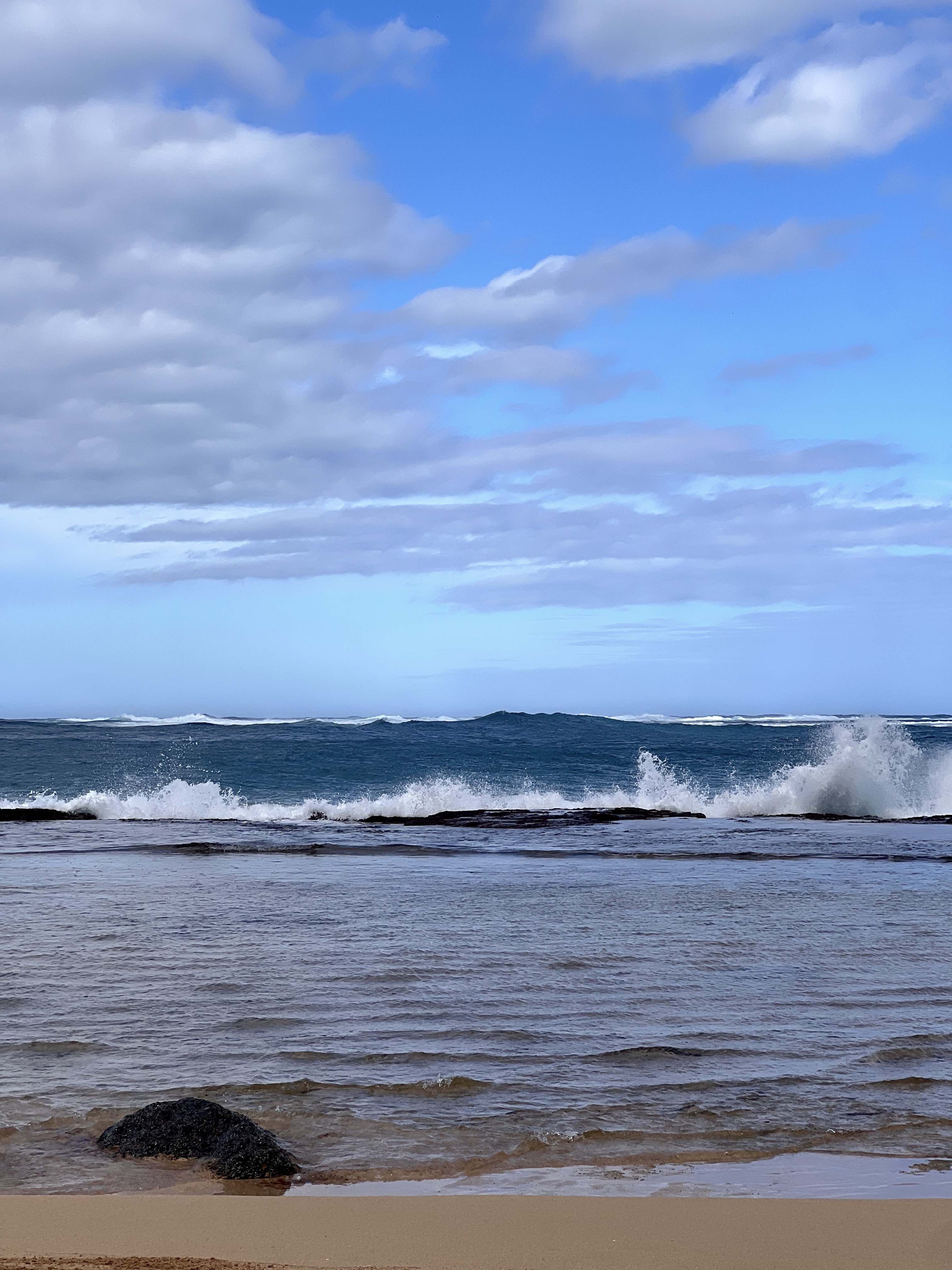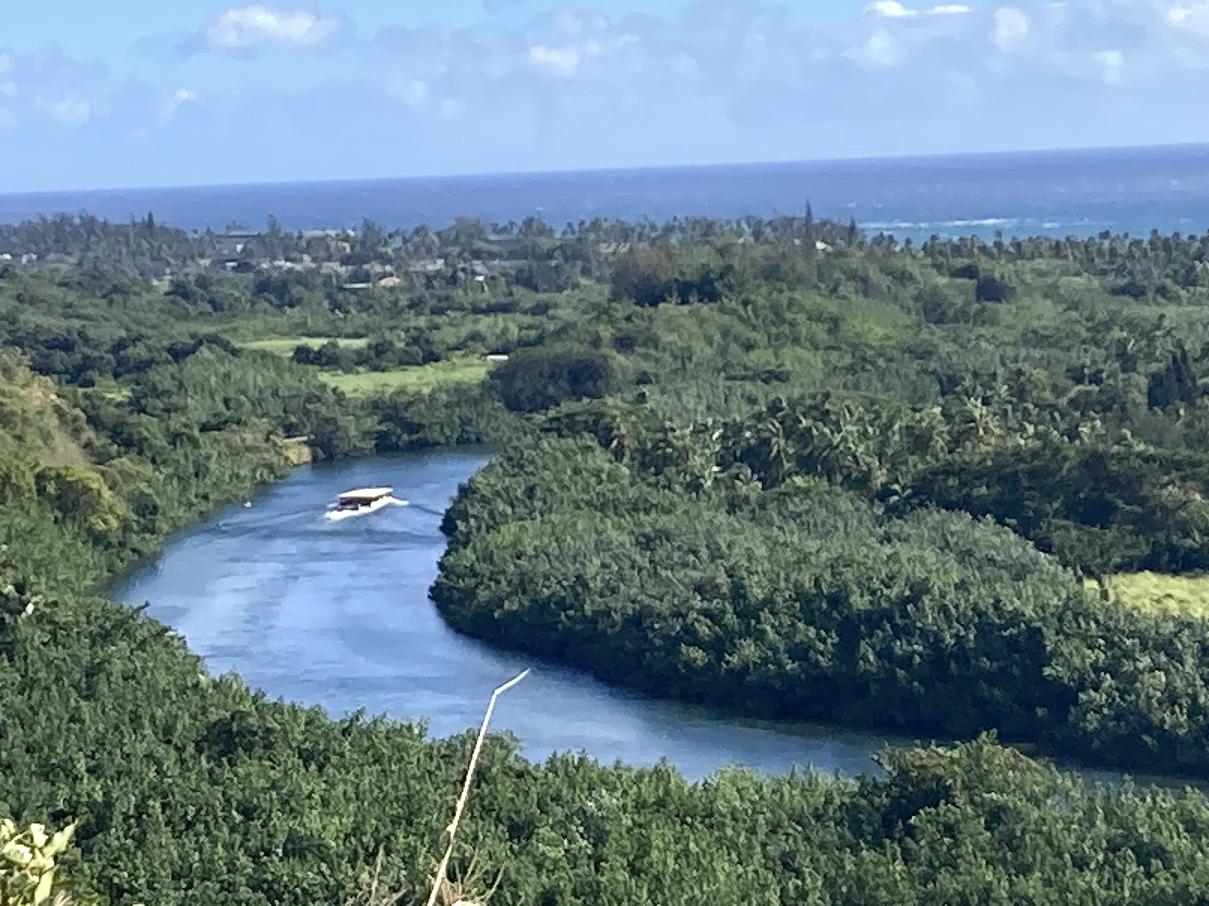 This was the part of the trip where we “discovered” the thing towards the end of our time that we wished we’d discovered at the beginning of our trip. Remember that song, “Puff the Magic Dragon”, and how I said Hanalei was a special place? Well, it was a really special place in the daytime. Absolutely the most spectacular part of the island. I mean, the drive in through the jungle is one of the most incredible views I’ve ever seen, like something out of a dream or a fantasy movie that’s just too good to be real. The little town is charming, with excellent food and beautiful people. Past that is a series of breathtaking beaches with wide stretches of sand and massive waves that roll-in in never ending sequence, crashing with those little magic white horses that I talked about. We found a beach that was hands-down my favorite beach of the island: Lumahai beach. There we had a picnic, watched people, stared bug-eyed at the gorgeous beach girls and talked about how we should move our teenage son Javan out here so he can find a girlfriend and future wife. One of the coolest things about this beach was the little river that flowed into the ocean here, but when the tide was high, the ocean flowed into it, creating a confluence zone that was calm enough for swimming even when the waves were rough. There I found a couple of rope swings and joined some of the local youths (and tourists) in swinging into the water and jumping from the trees. My inner Tarzan had a play day. He needs that sometimes.