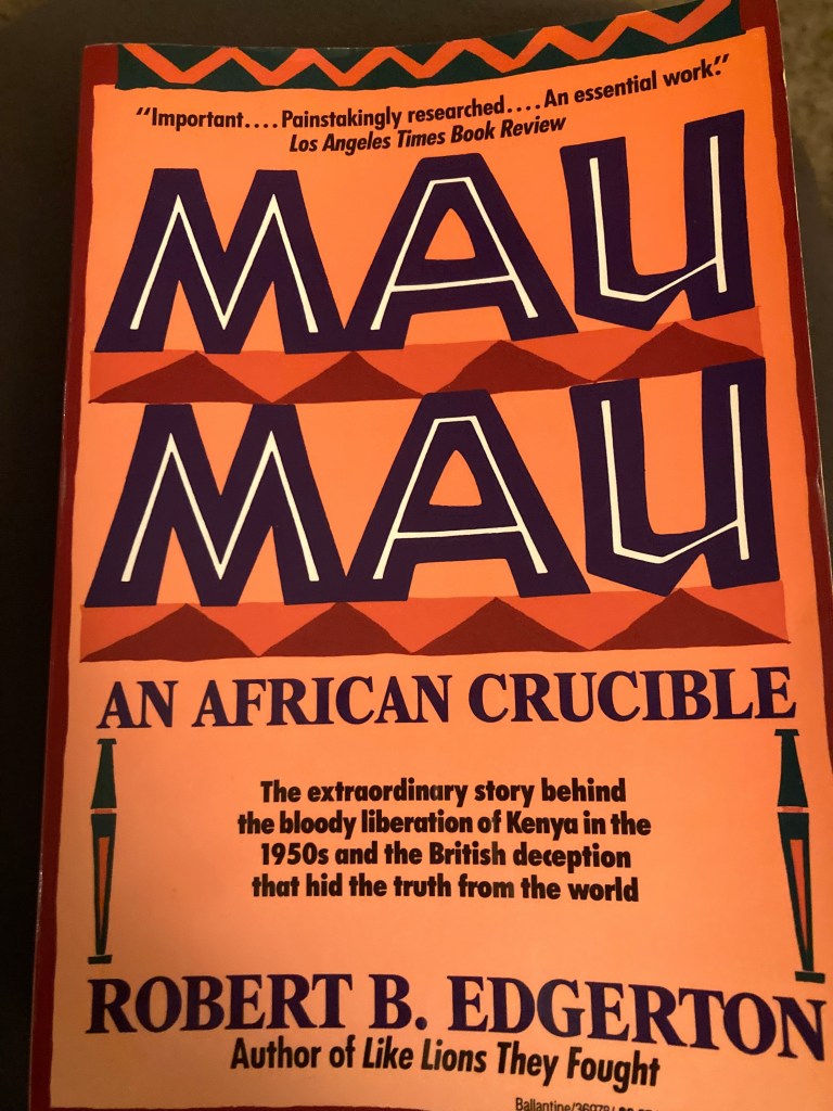This book was horrifying. And all very true. Edgerton has created a thoroughly-researched and balanced account of what occurred in the British colonization of Kenya and the resulting Mau-Mau backlash, following the story through Kenya’s successful independence struggle, and the post-independence situation in which Mau-Mau veterans and their families were never properly recognized nor cared for, and their demands were never met.