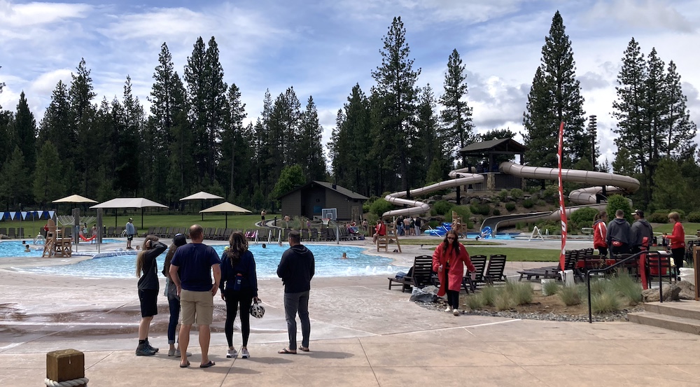 Sun River is a vacation town, a planned community of getaway and retirement homes built around recreational activities such as skiing in the winter, hiking in the summer, a golf course, aquatic center, spas, and many miles of bicycle trails. We didn’t have the best weather for our visit, but we enjoyed several of those activities, and I also managed to complete a challenging jigsaw puzzle back at the room. We went into Bend a couple times, including a really fun night club experience where one of our group convinced the DJ to play some Kenyan music and even got his hands on the microphone to sing along!