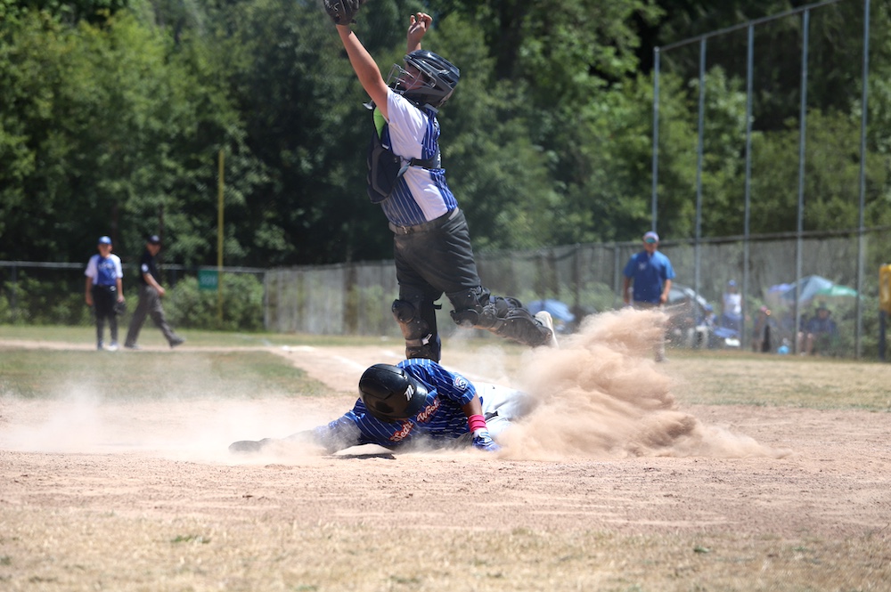 We took the ferry over at Edmonds and got there just in time for J to warmup with his team for their first game. Even though they were better than the team they faced (in my opinion, based on their performances at Districts), they made a lot of mistakes–cooking in the hot July-4th-weekend sun, and choking on the dust from these dirt fields–and ended up losing the game. It wasn’t their best showing. The second game on Sunday went pretty much the same way.