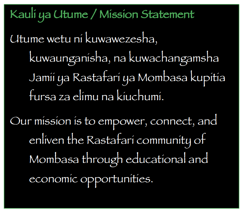 The Rastafari Community Development Office of Mombasa (Ofisi ya Maendeleo ya Jamii ya Rastafari) is a registered CBO & library in Mtopanga, Kenya. The brainchild of Ras Simba, the office was founded in 2021 by Ras Nic and Ras Franklin, and is home to a library, connections center, and community shop.